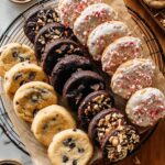 A delightful slice and bake cookie recipe featuring four unique flavors: Chai Spiced Cinnamon Sugar, Dark Chocolate Cherry, Chocolate Hazelnut, and Chocolate Peppermint. Each dough is chilled in logs, sliced, and baked to perfection, then coated or dipped for added texture and flavor. Perfect for gifting or enjoying a variety of festive cookies from one batch of dough.
