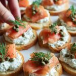 - Garnish and Serve: Garnish each crostini with a few capers and a sprig of fresh dill. Serve immediately and enjoy your festive appetizer.
