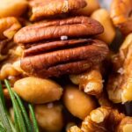 - Serve Mixed Spiced Nuts: Transfer cooled nuts to a serving bowl, garnish with a sprig of fresh rosemary, and enjoy.