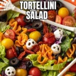 Spooky Halloween Salad with Colorful Tortellini, Cheese Skulls, and Red Wine Vinaigrette Recipe