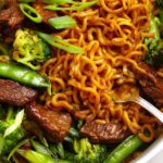 Drain those now-softened noodles and add them straight into the pan with the beef and veggies. Pour in your prepared sauce and toss everything together to coat every strand of noodle and piece of steak in that sticky goodness. Heat it through for a minute or two until the sauce thickens slightly and sticks perfectly. That’s when you know it’s ready to serve.