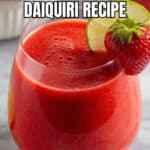 If you ever have leftovers—which isn’t common in my house—you can store the Strawberry Daiquiri in an airtight container in the fridge for up to 24 hours. Give it a good stir before serving again, but keep in mind the texture might not stay as icy and fresh since it will thaw.