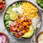Delicious and vibrant Street Corn Chicken Rice Bowls featuring tender, spice-coated chicken, zesty cilantro lime rice, and creamy street corn topping, perfect for a flavorful and satisfying meal.