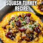 A delicious and hearty stuffed acorn squash recipe featuring ground turkey, apples, cranberries, and pecans, topped with parmesan cheese and crispy breadcrumbs. Perfect as a savory main course for a comforting meal.