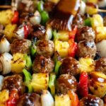 Sweet and Sour Meatball Kabobs are a delightful combination of tender meatballs, colorful vegetables, and juicy pineapple, all grilled to perfection and coated in a tangy homemade sweet and sour sauce. This flavorful and vibrant dish makes a perfect 30-minute meal, great for summer barbecues or family dinners.