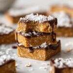 Delicious and naturally sweet Toasted Coconut Date Bars combining medjool dates, toasted coconut flakes, and almond butter, finished with a rich vegan dark chocolate coating. Perfect as a healthy snack or dessert, these bars are easy to prepare and offer a delightful blend of textures and flavors.