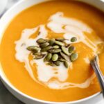 A creamy and comforting vegan butternut squash soup made with roasted squash, aromatic spices, and a touch of maple syrup. Perfectly smooth and naturally sweet, this soup is easy to prepare and can be served with a drizzle of coconut milk for extra richness.