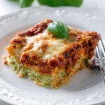 Once the zucchini base is done, spoon the meat sauce evenly over it. Sprinkle the remaining mozzarella and cheddar cheese across the top, then pop it back in the oven for about 10 more minutes. You want the cheese melted and bubbly but not burnt. When it’s done, let it cool for a few minutes before serving to help it set for easier slicing.