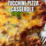 A delicious and low-carb Zucchini Pizza Casserole featuring shredded zucchini, ground beef, and a blend of cheeses baked to perfection with a savory tomato sauce.